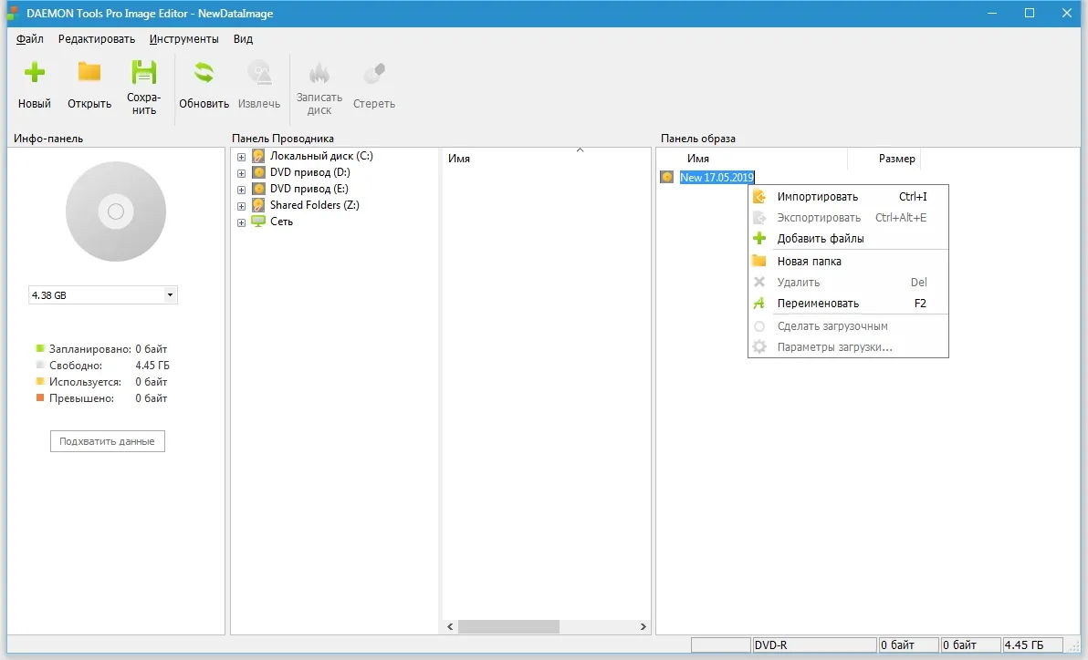 Помимо снятия образов с накопителей, программа позволяет создавать и использовать собственные образы, включая в них папки и файлы. Встроенный конвертер обеспечивает конвертацию старых образов в необходимые форматы, а инструменты редактирования позволяют менять содержимое и структуру образов.